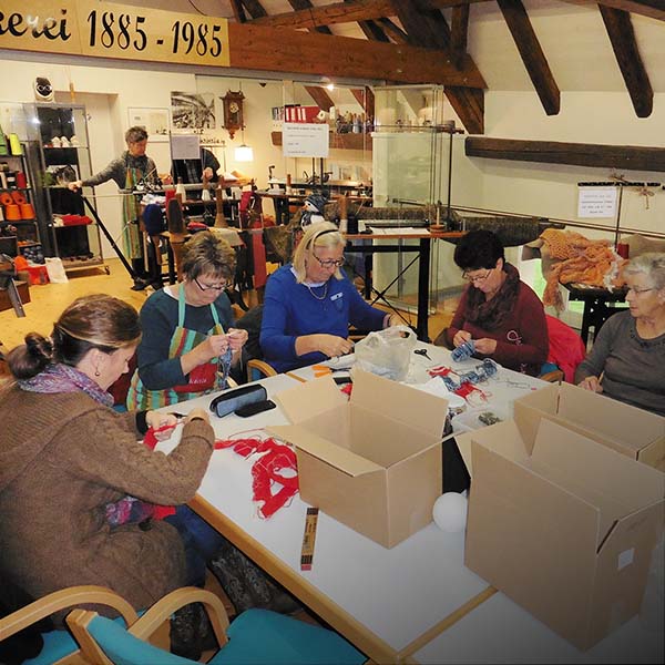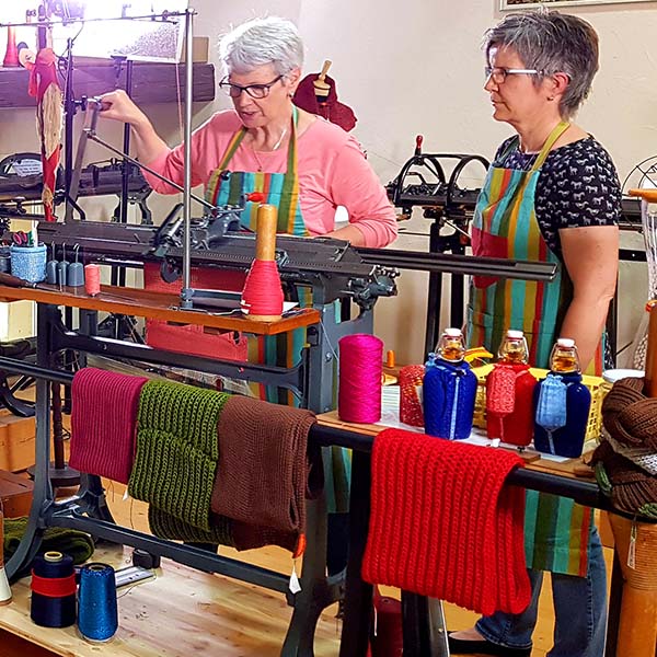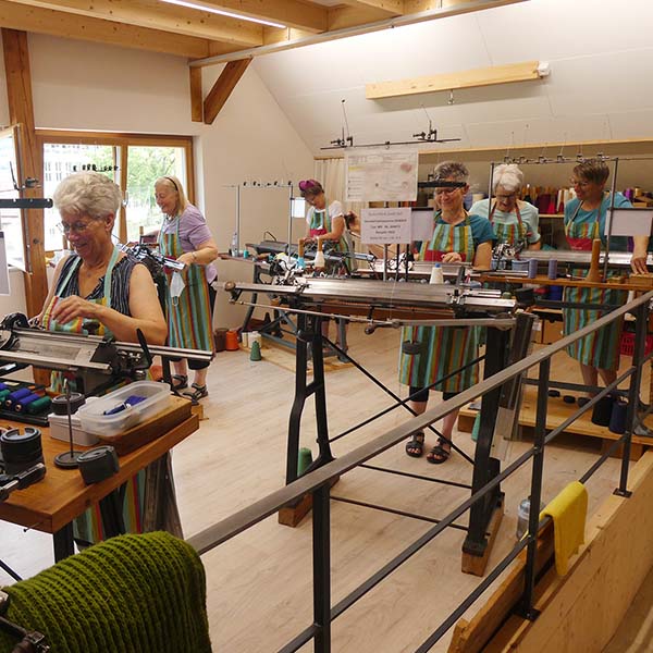 Mit beeindruckender Geschicklichkeit zeigen die Strickerinnen, wie auf diesen antiken Maschinen Schals, Mützen, Lesezeichen und Socken entstehen. Kommen Sie vorbei und beobachten Sie, wie unsere Strickerinnen ihre Kreationen lebendig werden lassen.